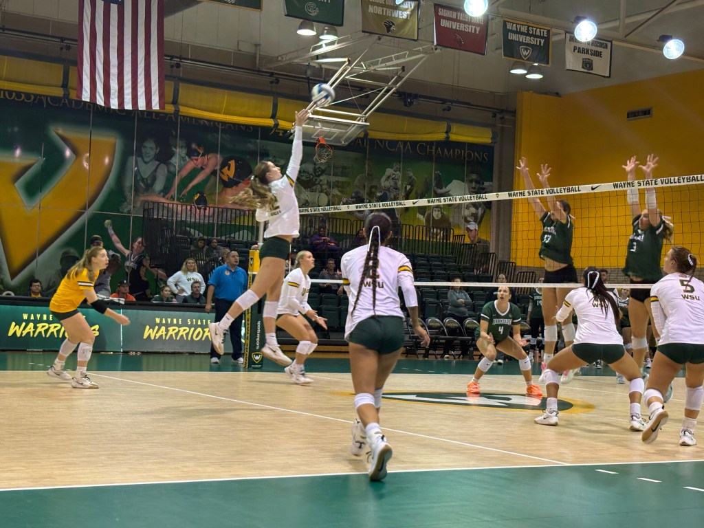 DETROIT Michigan Oct. 2025- Wayne State Warriors volleyball team took on the Parkside Rangers on Friday night, October 10th, and won the game three to two.